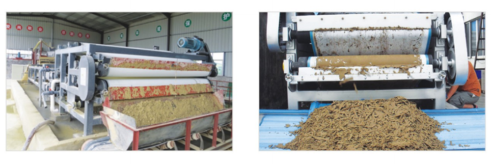 污泥脫離中壓區(qū)后就進(jìn)入高壓區(qū),污泥在此區(qū)內(nèi)受到1~3組對(duì)夾輾(或帶)擠壓,經(jīng)過擠壓后體積大幅收縮,污泥內(nèi)的間隙游離水被充分?jǐn)D出,此時(shí),形成含固率較高的濾餅。重力濃縮脫水區(qū),污泥經(jīng)布料斗均勻送入濾網(wǎng),隨著濾帶向前運(yùn)行,游離態(tài)的水在自重作用下通過足夠長的重力自由脫水區(qū)流入接水槽,重力脫水段也可以說是高度濃縮段,主要作用是脫去污泥中的大部分自由水及間隙水,合污泥的流動(dòng)性減小,便于污泥在濾網(wǎng)上的較厚堆積,增強(qiáng)污泥結(jié)壓榨的承受力。